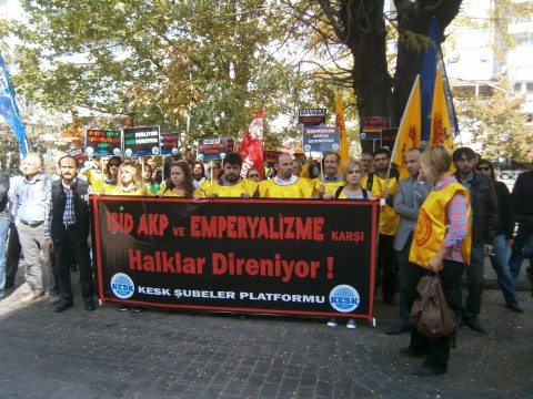 “Savaş Tezkeresi Kaldırılsın! Gerici IŞİD çetelerine değil, Kobane’de insanlığa her tür insani destek verilsin! Yeni Roboskiler, Şengaller, Sivaslar yaşanmasın!” talepleri ve “İNSANLIĞA SES VERİYORUZ! SAVAŞI DURDURALIM” şiarı ile GREVDEYİZ!