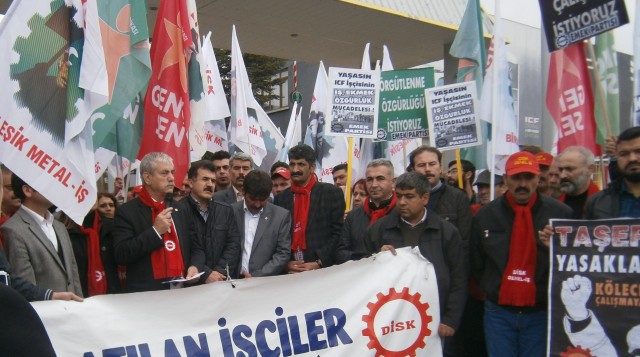 “Bakanlıktan yetki belgesi gelir gelmez işveren işçi arkadaşlarımızı işten çıkarmaya başladı. Anayasa ve yasalar ayaklar altına alınarak burada bir sosyal cinayet işlendi. İşverenlere bu sosyal cinayetleri işleme cesaretini veren ise maalesef hükümetin çıkardığı yasalardır. 6356 Sayılı yasa’da yer alan çift baraj, yetkinin bakanlıktan alınması ve yetki itirazları, işverenlere bu gibi yasadışı, insanlık dışı uygulamalar için cesaret vermektedir. Türkiye’de sendikal nedenle işten çıkarmaya karşı güvence olarak ‘tazminat’ belirlenmiştir. Bu ne demektir: Paran varsa verirsin tazminatı, yasaları da anayasayı da çiğneyebilirsin. Kısacası parası olana Anayasa’yı yasaları çiğnemek serbest. ICF işçilerini anayasal haklarını kullandığı için işten çıkaran işveren cesareti, hükümetin çıkardığı 6356 Sayalı Yasa’dan almaktadır.