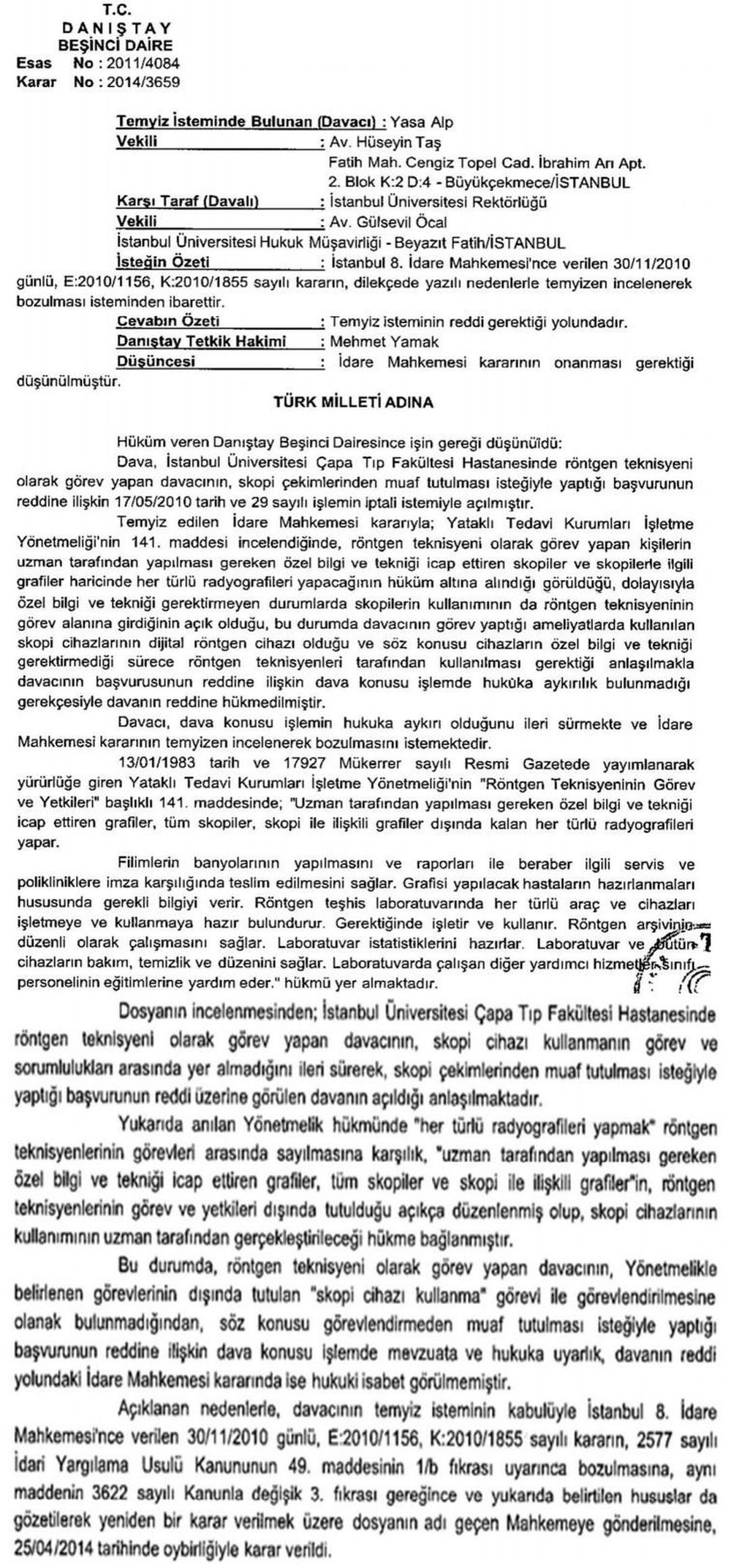 DANIŞTAY RADYOLOJİ TEKNİSYENLERİNİN LEHİNE BİR KARAR DAHA ALDI