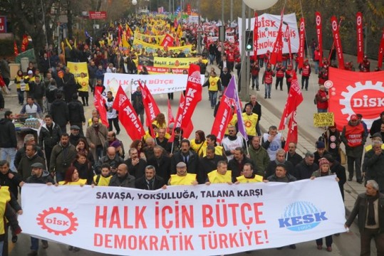 Bugün (13Aralık), KESK ve DİSK öncülüğünde emek ve demokrasi güçlerinin katılımıyla Savaşa, Yoksulluğa, Talana Karşı, Halkçı Bütçe Demokratik Türkiye! Saraylar Değil Ekmeğimiz Büyüsün! şiarıyla gerçekleştirilen miting, onbinlerin Ankara Garı önünde toplanıp Sıhhiye Meydanı’na yürümesi ile son buldu.