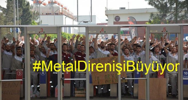 Metal işçileri kararlı mücadelelerini sürdürüyorlar. Bilindiği üzere 2014 Aralık ayında Türk Metal Sendikası ve MESS arasında işçilerin ‘’satış sözleşmesi’’olarak değerlendirdikleri bir TİS imzalanmasının ardından metal işçileri arasında imzalanan sözleşmeye ve sözleşmeyi imzalayan Türk-Metal Sendikasına tepkiler artmış; DİSK’e bağlı Birleşik- Metal-İş , MESS- Türk Metal sözleşmesini kabul etmeyerek üyeleriyle birlikte grev kararı almıştı. İşçilerin mücadelesinden korkan hükümet ve patronlar el ele vermiş, patronların isteği üzerine Türkiye tarihinde bir kez daha bir grev hukuksuz şekilde yasaklanarak metal işçilerinin mücadelesi kırılmak istenmişti. Ancak ne imzalanan sözleşme, ne de hükümet ve patronların oyunları metal işçilerinin mücadelesini engelleyemedi. Türk Metal sendikası üyesi işçiler mücadeleleri ile, sendikalarını Bosch fabrikalarında 2 yıllık ve Türk Metal-MESS sözleşmesinden daha iyi bir sözleşme imzalamaya zorladılar.