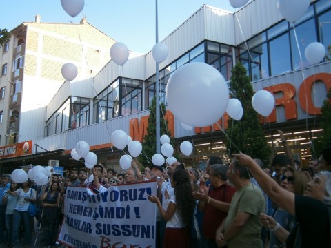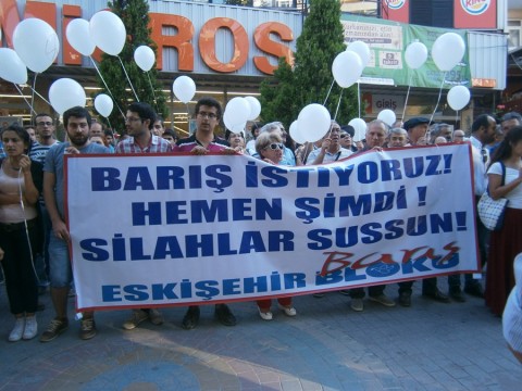Eskişehir Bakış Blok’u savaşın değil barışın hakim olduğu, halkların kardeşçe yaşadığı bir ülke için mücadele edecektir. Çünkü savaşın getireceği işsizlik, yoksulluk, yoksunluk ve belirsizlikle en başta yüz yüze gelmek zorunda olan biziz. Her alanda artan savaşa, yangınlara, ölümlere, kurşunlara, bombalamalara karşı, barışa ihtiyacımız var. Bu savaş dini, imanı, vatanı savunmanın savaşı değildir. Bu savaş, talanın, rantın, yağmanın ve sarayın savunma savışıdır. Bizler barış istiyoruz. İnanıyoruz ki halkımız da barış istiyor. Halkın barış taleplerine kulaklarınızı tıkamaktan vazgeçin. Bu gayrimeşru iktidar derhal çatışmaları durdurmalıdır. Kalkan tabutlara artık tahammülümüz kalmamıştır. Savaş politikacıları şunu iyi bilsin ki biz bu savaşta yokuz. Savaş cephenize bizi yazmayın. Bizim gündemimizde savaş değil barış olacak.