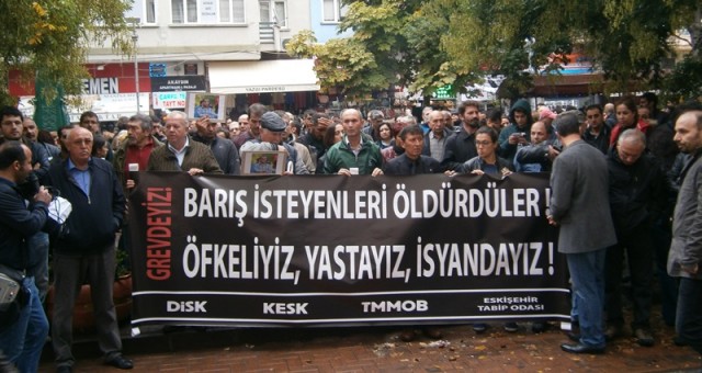 11, 12 ve 13 Ekim günleri hep birlikte yasımızı tutuyoruz. Bugün ve yarın bütün Türkiye’de iş bırakıyoruz.