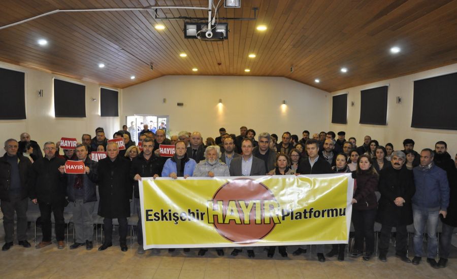 Eskişehir Hayır Platformu Yürütme Kurulu adına açıklama yapan Yalçın Mutlu, kurdukları platformun kapısının hangi görüşten olursa olsun, kime oy verirse versin hayır diyen herkese ve tüm örgütlere açık olduğunu söyledi.