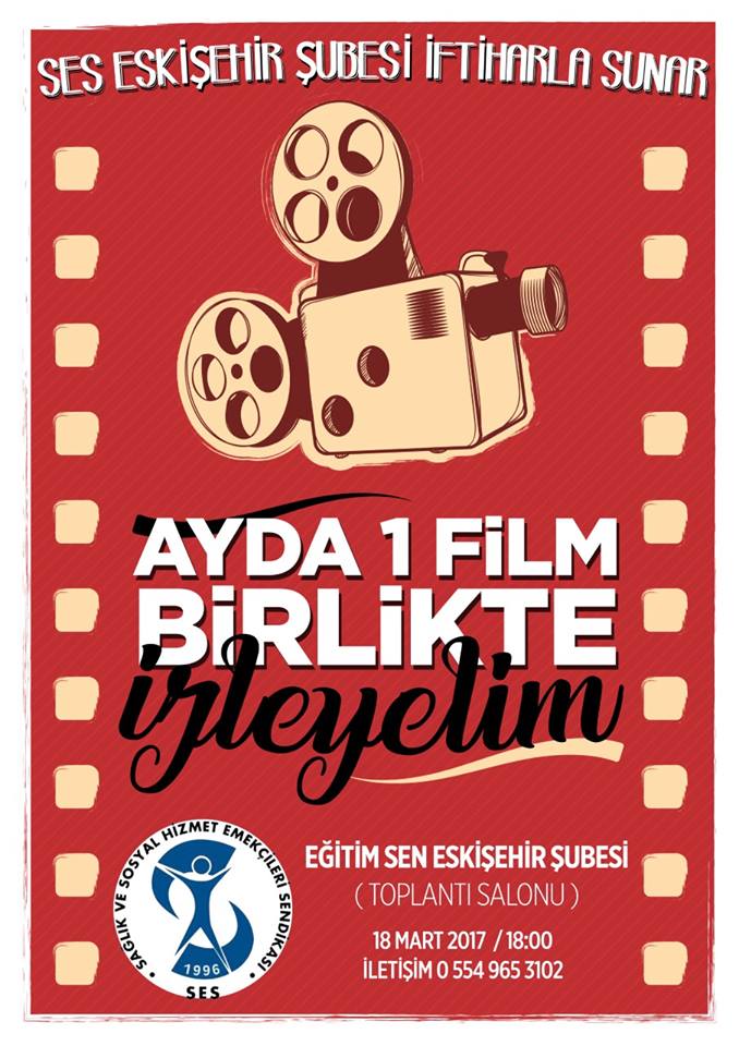 Değerli üyelerimiz, sendikamız her alanda faaliyetlerine devam ediyor. Bundan böyle her ay güzel bir filmi birlikte izlemek için bir program oluşturduk. Bu amaçla seçtiğimiz ilk filmi 18 Mart Cumartesi günü saat 18:00’de Eğitim-Sen salonunda izleyeceğiz. Tüm üyelerimiz ve yakınlarının katılımına açık olan etkinliğimiz için işyeri temsilcilerimizle veya 533 427 54 02 nolu telefon ile iletişime geçebilirsiniz.