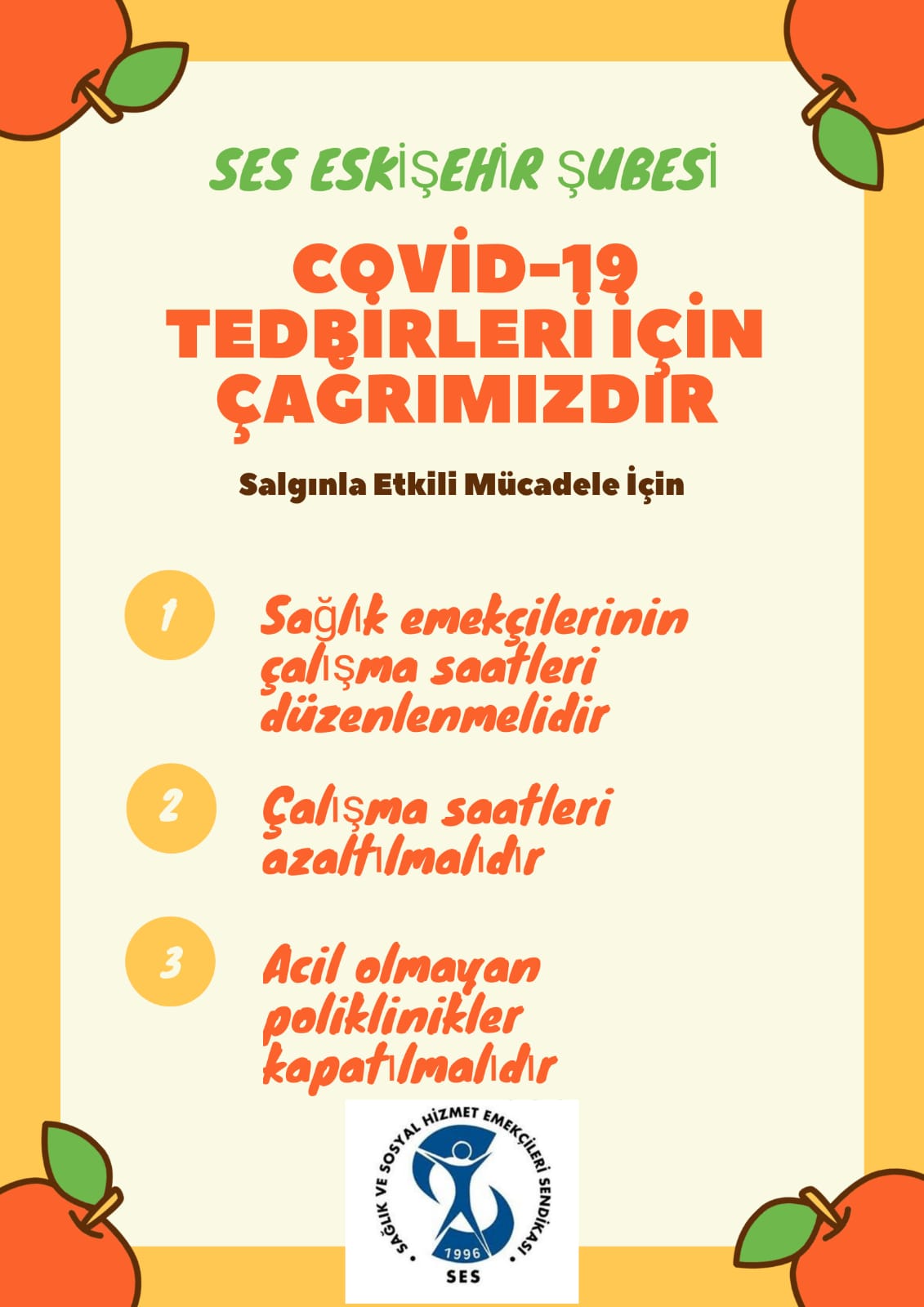 Bizler sağlık emekçileri olarak öncelikle gerekli bilimsel tedbirleri almak ve asla panik yapmadan süreci yürütmek durumundayız. Bu günlerde gerek iş yerlerinde gerekse hayatımızın tüm diğer alanlarında karşılaşacağımız farklı sorunlarımız olabilir, sendika olarak şimdiye kadar olduğu gibi bundan sonra da her koşulda sizlerin yanındayız, bu süreci birlikte dayanışma ile aşacağız. İş yerlerinde yaşadığımız yaşayacağımız her türlü sorunda yanınızda olmaya çözüm üretmeye çabalayacağız. Tüm yönetimlerimiz ve temsilcilerimiz buna hazır.