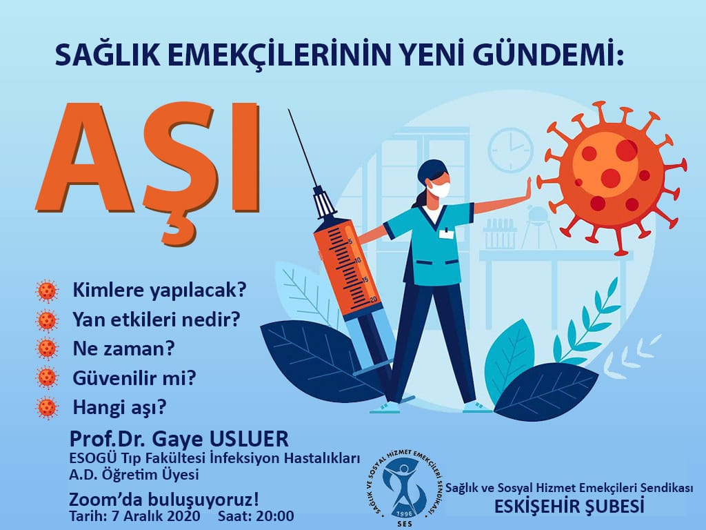 Sevgili Arkadaşlar biliyorsunuz aşı konusunda önemli bir tartışma ve kafa karışıklığı var. Bizde bunu düşünerek, üyemiz değerli Hocamız Prof. Dr.Gaye Usluer ile bir online toplantı planladık. Yanıtlanmasını istediğiniz soruları kendisine ileteceğiz. (Toplantının yapılacağı program değişebilir. Ve programın özelliklerinden dolayı katılım sayısı kısıtlı olabilir. Pazartesi günü toplantının internet linki sosyal medyadan paylaşılacaktır.) Tüm arkadaşlarımıza duyurulur.