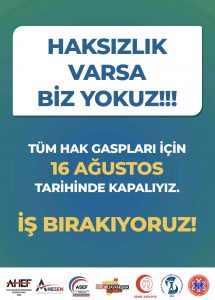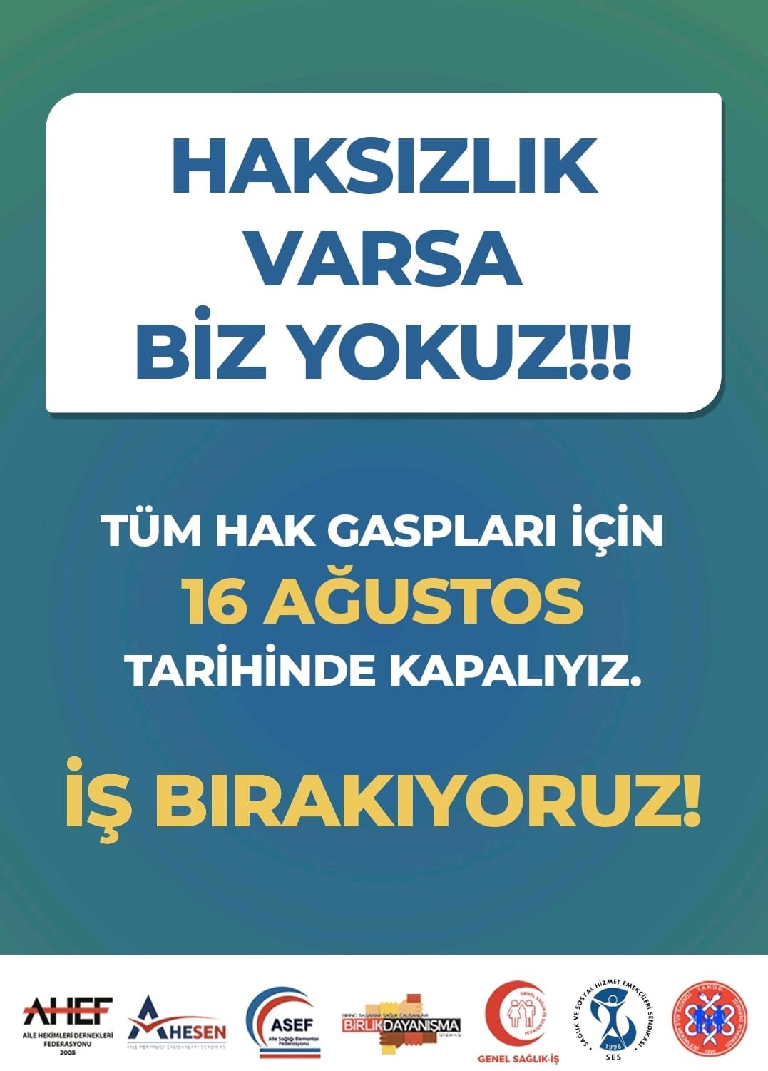 Tüm halkımızın sağlık emekçilerinin yanında olacağını düşünüyoruz. Halktan ve çalışandan yana, herkese ,eşit ,nitelikli, bilimsel ,kamucu ,halkçı bir sağlık sistemi için mücadeleye çağıyoruz. 16 Ağustos’ta Aile Hekiminizi ve Aile Sağlığı Çalışanınızı destekleyin diyoruz.